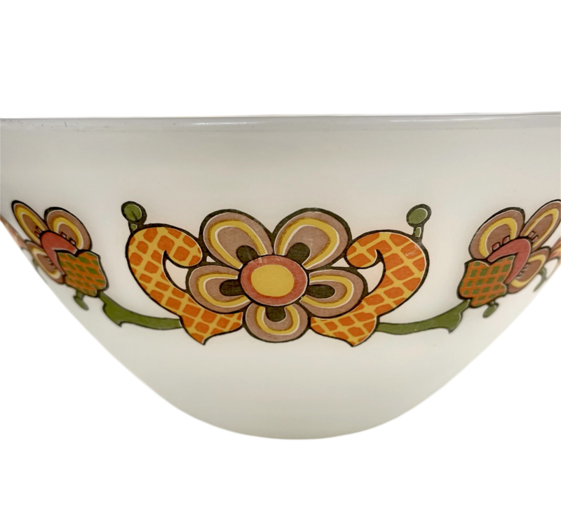 Opaline glasschaal met retromotief van Schott Mainz, Jena Glas.