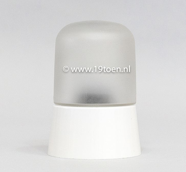 Het betreft hier alleen het glas. Wil je er een complete lamp van maken? We hebben meerdere kleuren en modellen schroefbolhouders die passen op dit glas. Je vindt deze schroefbolhouders maat S op deze pagina. Op de 2e foto zie je dit glas afgebeeld met een origineel vintage bakelieten schroefbolhouder maat S, en op de 3e foto met een witte schroefbolhouder.