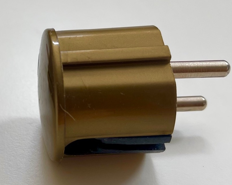 Klapstekker met randaarde in goudkleurig kunststof. Eenvoudig te monteren.